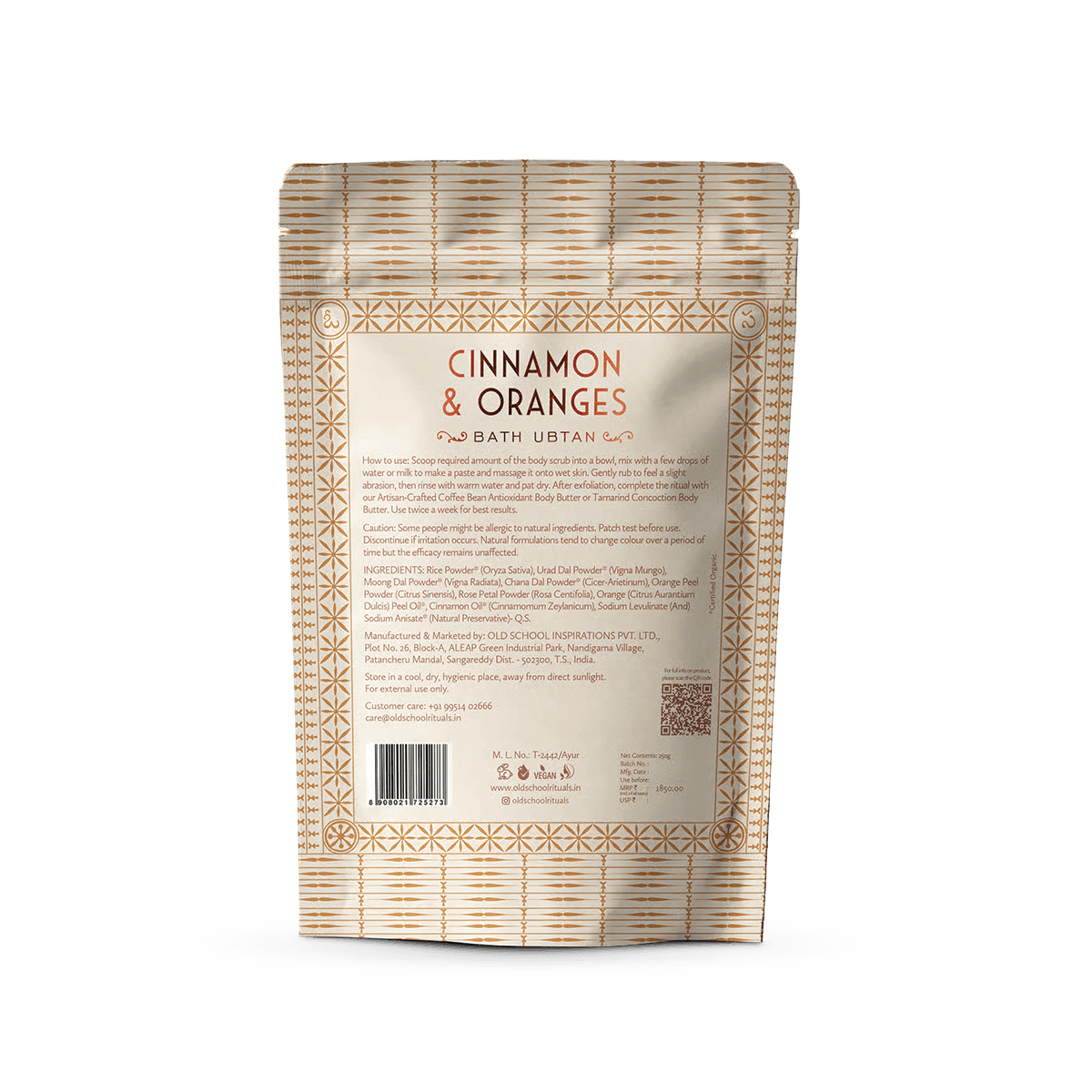 For optimal results cleanse your body with Cinnamon and Oranges Bath Ubtan. After exfoliation, complete the ritual with our Artisan-Crafted Coffee Bean Antioxidant Body Butter or Tamarind Concoction Body Butter to moisturise your skin and keep it nourished.